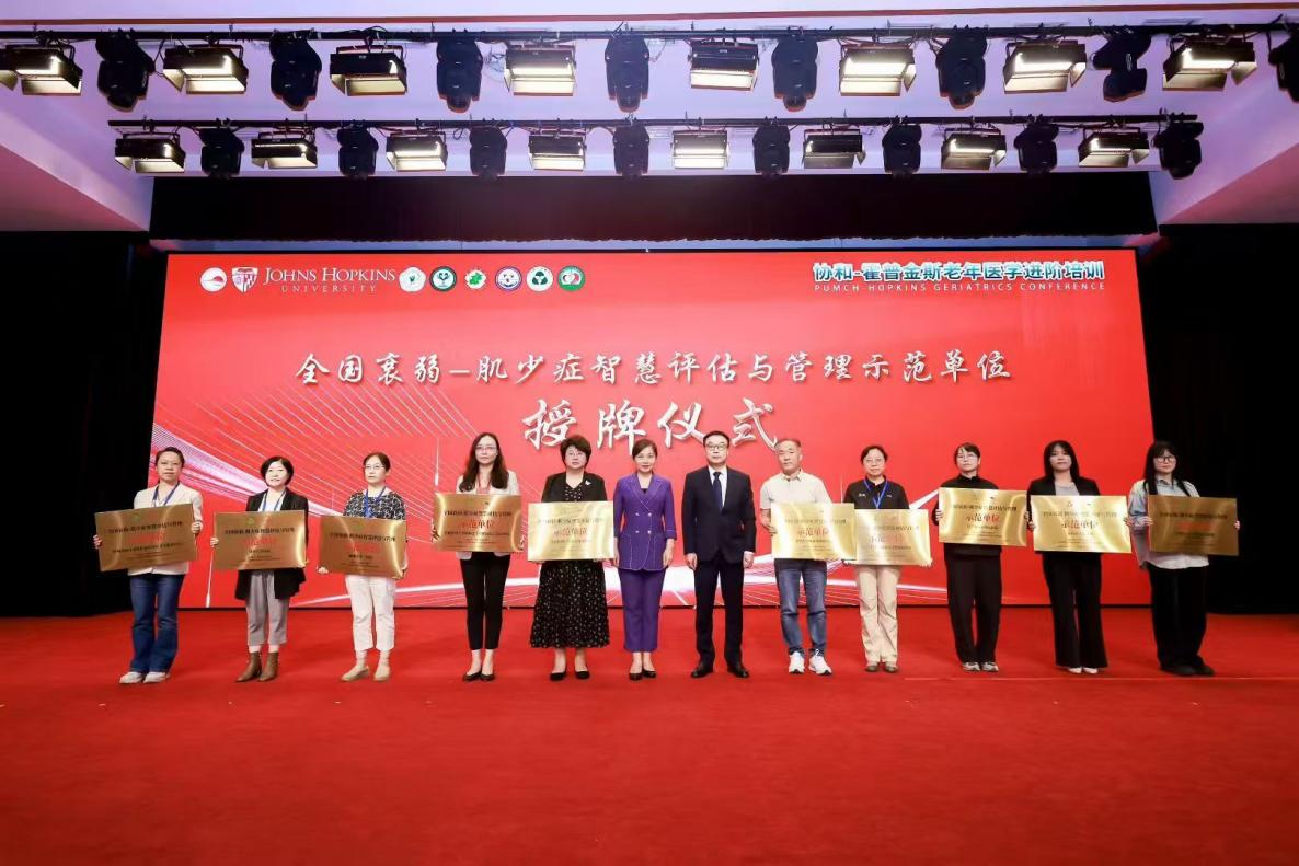 在协和霍普金斯论坛上,《全国衰弱-肌少症智慧评估与管理》项目取得了重要进展。经过严格的审核和筛选,我院老年医学科凭借完备的学科架构、精湛的医疗技术、独具特色的“老年综合评估”体系、多学科协作(MDT)的诊疗模式以及充满人文关怀的全程化管理服务脱颖而出,成功获选。会上,中国老年保健协会段西普副会长和北京协和医院老年科康琳主任对获选单位进行了授牌。