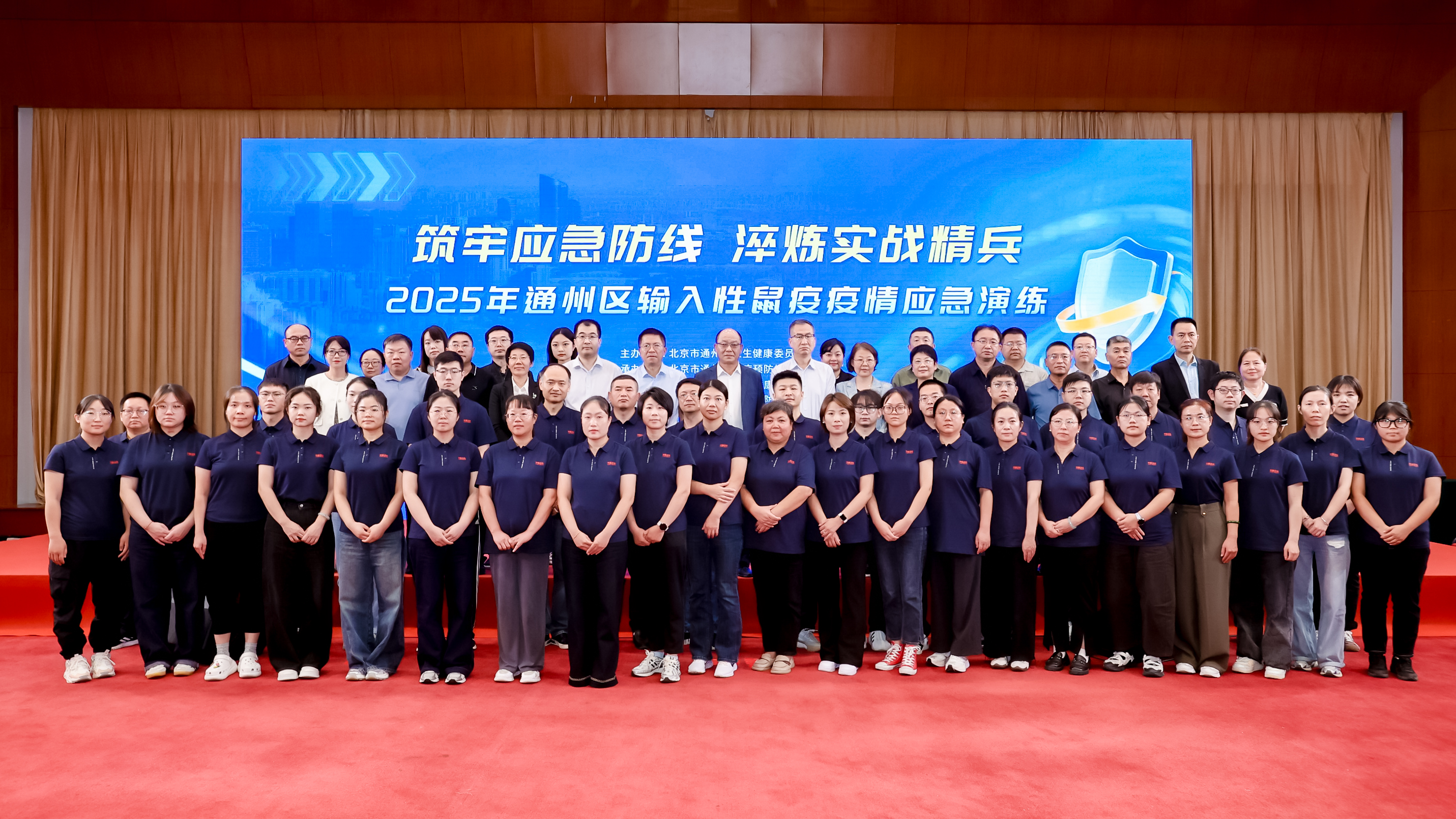 本次应急演练得到了天津市武清区和河北省廊坊市卫健委(疾控局)、疾病预防控制中心的大力支持。内蒙古奈曼旗和翁牛特旗、西藏拉萨市城关区、湖北省武当山经济特区和山西省长治市上党区及通州区各医疗卫生机构共计200余人观摩了演练。演练由通州区疾病预防控制中心(卫生监督所)主任朱立新主持。通州区卫生健康委副主任、疾控局局长徐娜全过程部署调度并参与角色扮演。