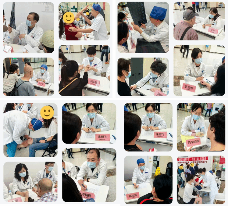 本次义诊集结了成形科、儿科、耳鼻喉科、风湿免疫科、妇科、肛肠科、骨科、呼吸与危重症医学科、口腔科、老年内科、临床营养科、泌尿外科、内分泌科、皮肤科、普通外科、全科医学科、神经内科、消化科、心血管内科、胸外科、药学部、运动医学科、职业病科、中医科、综合内科等25个科室的32位医生、护士、药师。