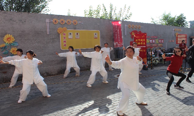 八段锦团体展示区:八段锦团体展示不仅向老年人展示了八段锦的动作要领,更是传递动静结合的养生智慧。