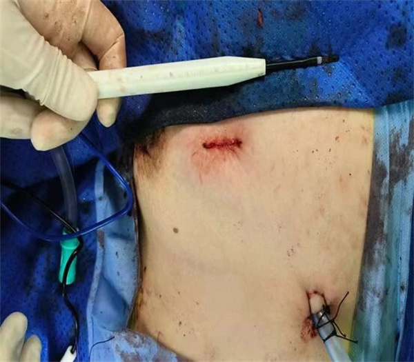 患者张女士因车祸致胸部严重受伤,出现多根肋骨骨折并伴有气胸,呼吸功能受到显著影响。经航空总医院胸外科主任左建新团队全面评估,决定为其施行胸腔镜下肋骨骨折微创内固定术;术中采用解剖型金属接骨板进行精准复位与固定。术后张女士恢复良好,疼痛显著缓解,并于术后短期内下床活动。
