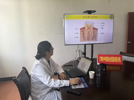 针对基层医院老年患者多的特点,口腔科主任医师韩宇讲解了老年常见口腔疾病的中西医结合防治。卫生院的全科医师们纷纷表示,会提示村里的老年人重视口腔卫生,定期来进行口腔检查,及时治疗口腔疾病。