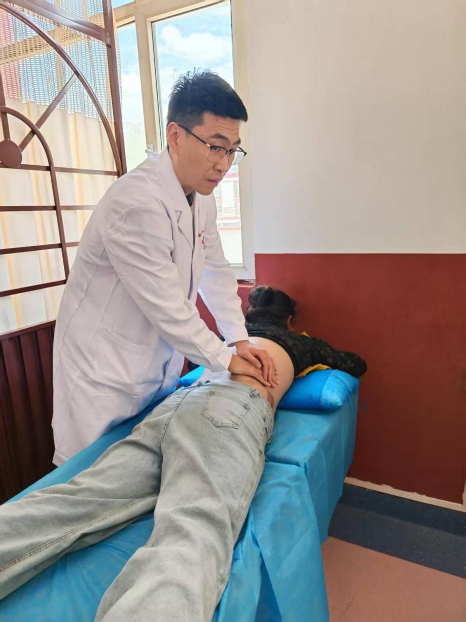 中藏医科里,一例严重腰痛的患者走进病房,援青荣小龙主治医师协同科室医护给患者制定中藏医治疗方案,经过针刺,艾灸,按摩推拿,药物熏洗等传统综合疗法后,患者腰痛症状减轻明显。