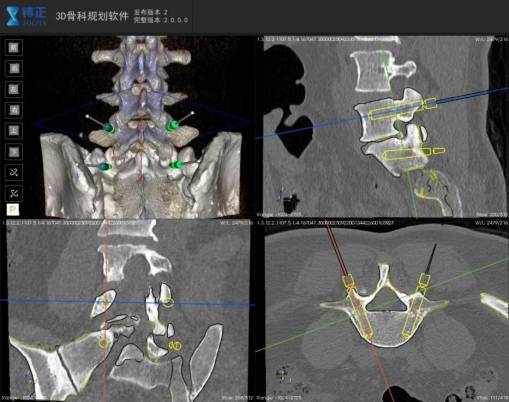 作为此次手术的“核心导航系统”,铸正佐航301手术机器人从根本上突破了传统手术的精度局限。术前,团队通过机器人影像分析模块对患者腰椎CT和MRI数据进行三维重建,精准还原腰5-骶1节段的解剖结构,智能规划出更优穿刺路径与置钉角度,有效规避了神经血管密集区域。
