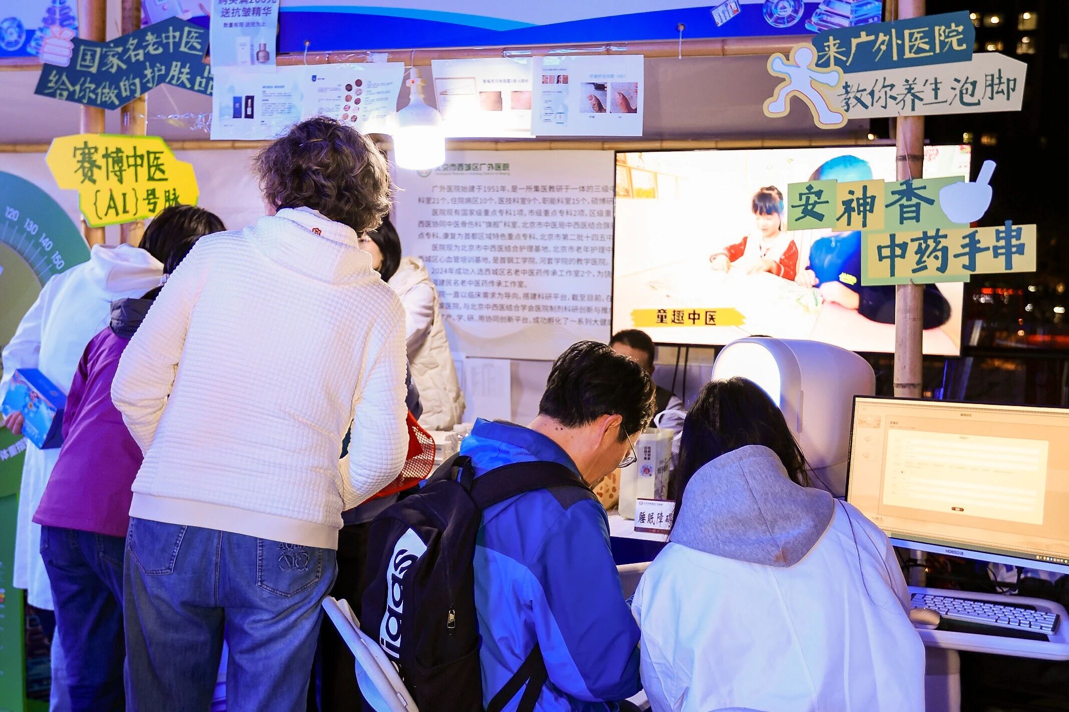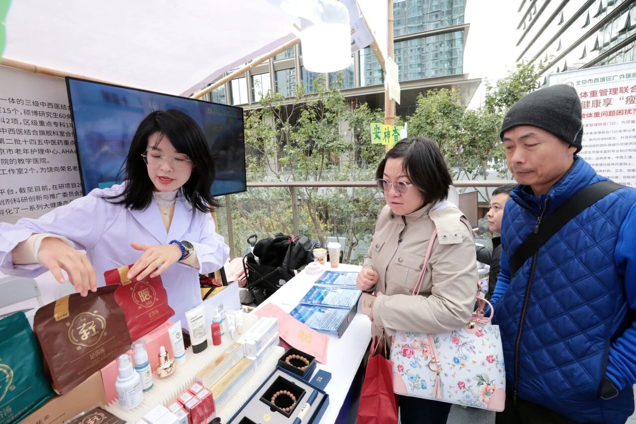 在特色市集国药体验区,广外医院体重管理联合门诊与睡眠障碍联合门诊的8位专家坐镇,为前来咨询的市民一对一提供个性化健康方案和健康宣教。现场还展示了大健康产品与智慧中医问诊,让市民近距离感受中医药科技赋能健康生活的智慧魅力,引来不少市民驻足体验。