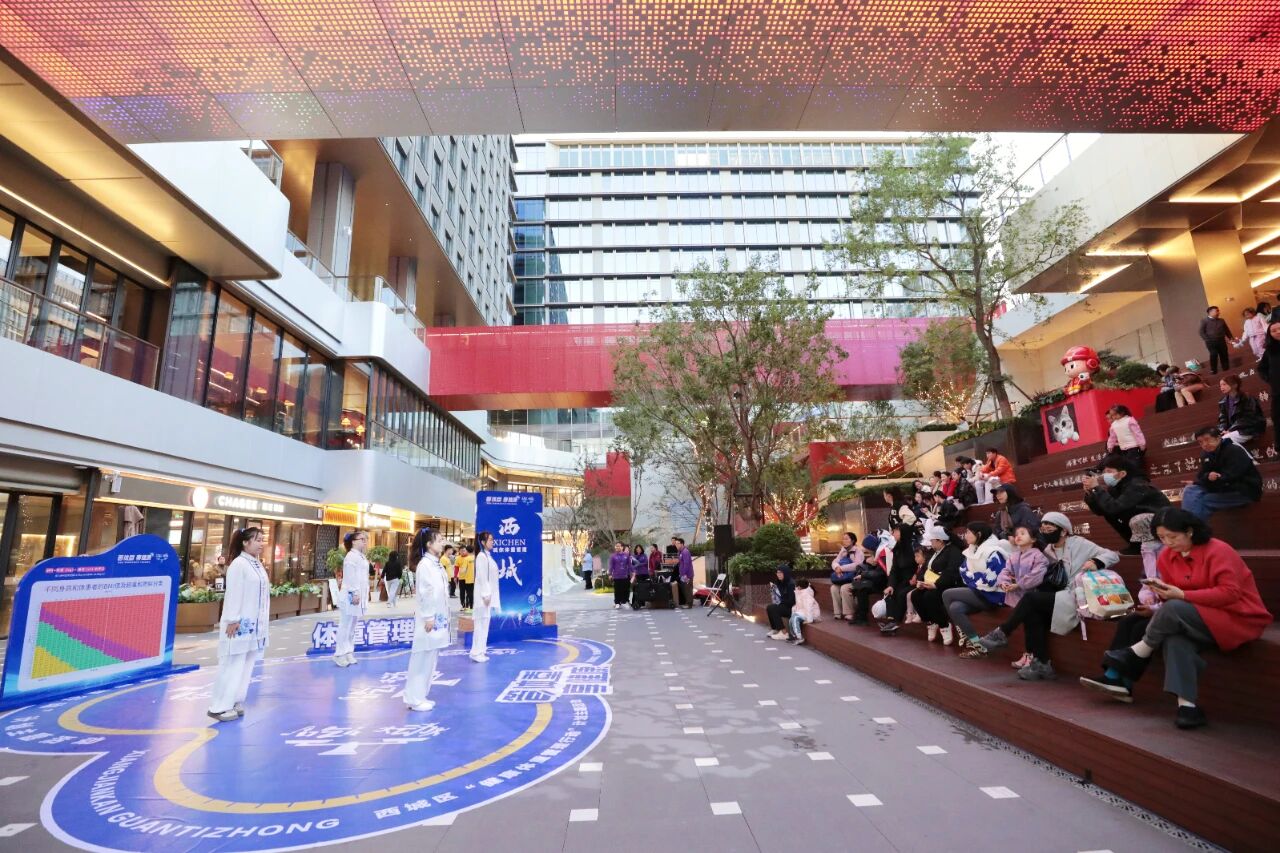 不仅如此,广外医院“美小护”们还现身运动区,带来传统养生功法——八段锦的展示与教学。伴随着夜幕降临,她们带领现场市民一起跟练,在轻松愉快的氛围中舒展筋骨、燃烧卡路里,传递“吃动平衡”的健康理念。