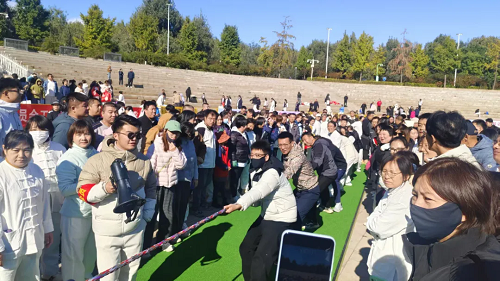 八段锦展演活动结束后,激动人心的平谷卫健系统拔河比赛随即拉开帷幕。来自各单位的 31 支参赛队伍迅速集结,每场比拼都扣人心弦。赛场上,队员们紧握长绳、脚蹬地面,喊着整齐的号子,拼尽全力向后拉;赛场下,啦啦队的加油声、呐喊声此起彼伏,“加油!坚持!” 的呼喊响彻全场,大家早已不分所属单位,只为绳标的每一次移动而欢呼。有的队员磨破了手掌仍咬牙坚持,有的队伍即便暂时落后,也绝不放弃最后一秒,更令人动容的是,比赛结束后,双方队员无论胜负,都会笑着握手拥抱、互相鼓劲,展现了卫健系统 “一盘棋、一条心、一股劲” 的深厚情谊。