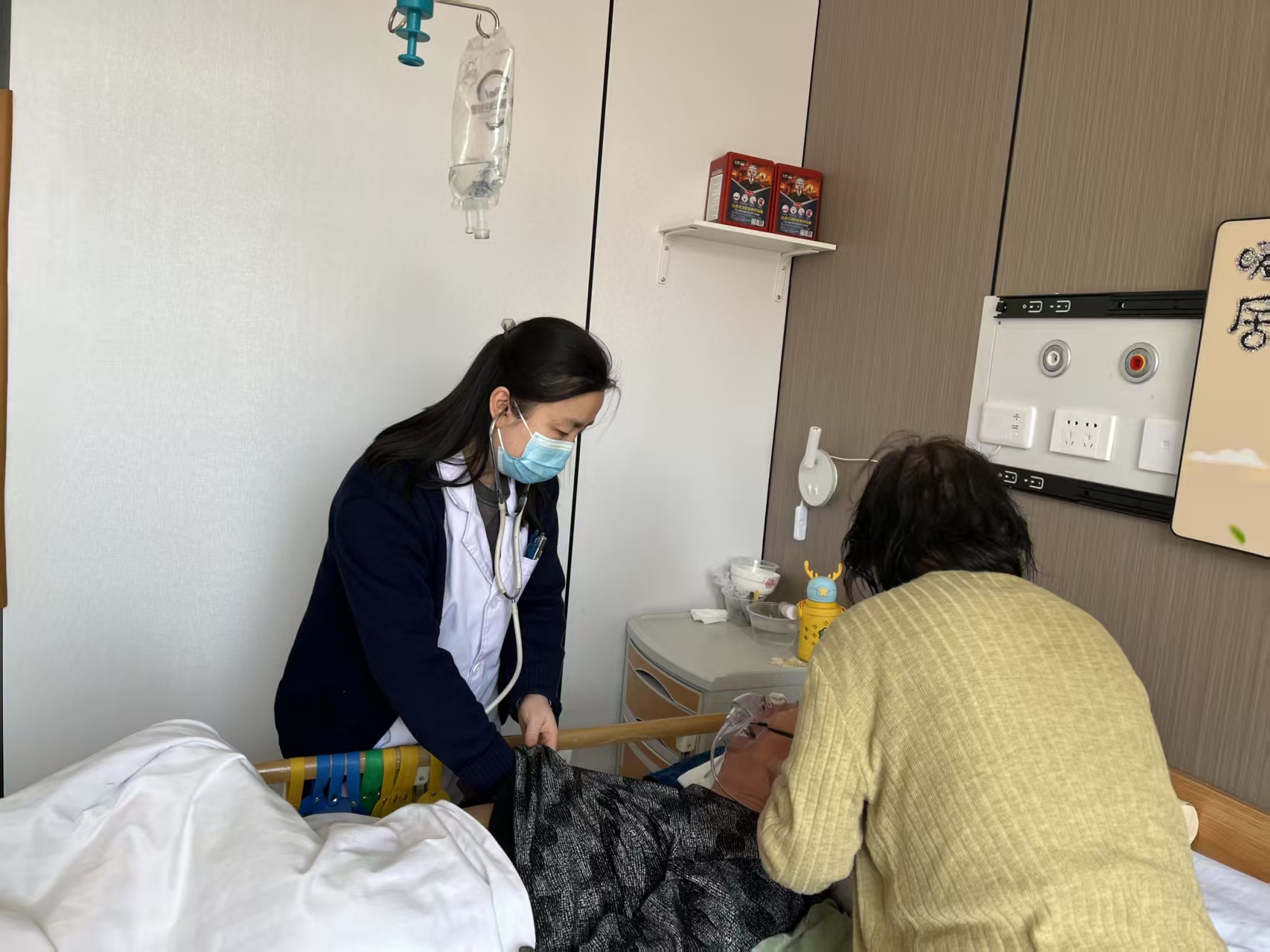 郭女士的救治过程堪称这一模式的经典实践。近日,她因脑动脉瘤术后并发症合并重症肺炎紧急入院,伴随多管道护理需求及基础疾病叠加风险。康庄镇社区卫生服务中心迅速启动多学科协同机制,由全科医生、专科护士、康复治疗师和心理咨询师组成的家庭医生团队,制定了涵盖医疗护理、管道维护、心理疏导、生活照料的个体化方案。团队成员每天记录她的生命体征变化,每周调整康复计划,甚至为她定制营养配餐。经过八个月连续照护,患者从昏迷不醒到能自主进食,从卧床不起到缓慢行走,最终回归家庭接受延续性护理。