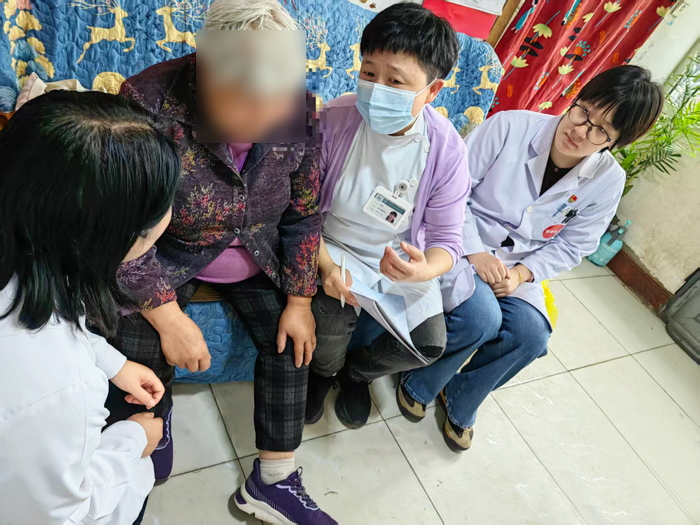 在患者家中,“在家住院”的专业流程一一兑现:团队和在医院查房一样,细致评估患者症状控制及营养摄入情况,针对现有不适症状现场研讨并敲定处理方案;逐项对接药物诊疗方案的居家落实细节,确认营养支持以及药物的配送与使用方法,明确舒适护理的操作标准,确保从诊疗到护理每一项都和住院时“一个样”;耐心倾听患者及家属心声,认真梳理全家人的心愿诉求,让“在家住院”不仅有专业医疗,更有暖心陪伴;潞河医院社工部还同步发挥优势,提前为患者链接了社会支持力量,让“医疗+社工”的多元服务贯穿“居家住院”全程,解决家庭的后顾之忧。