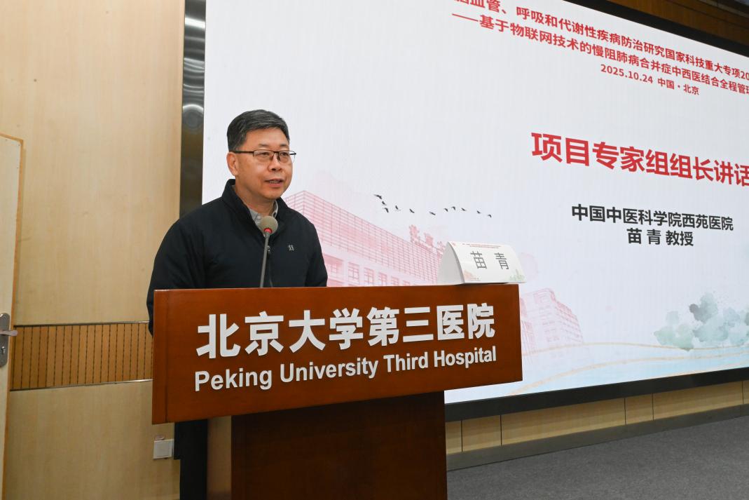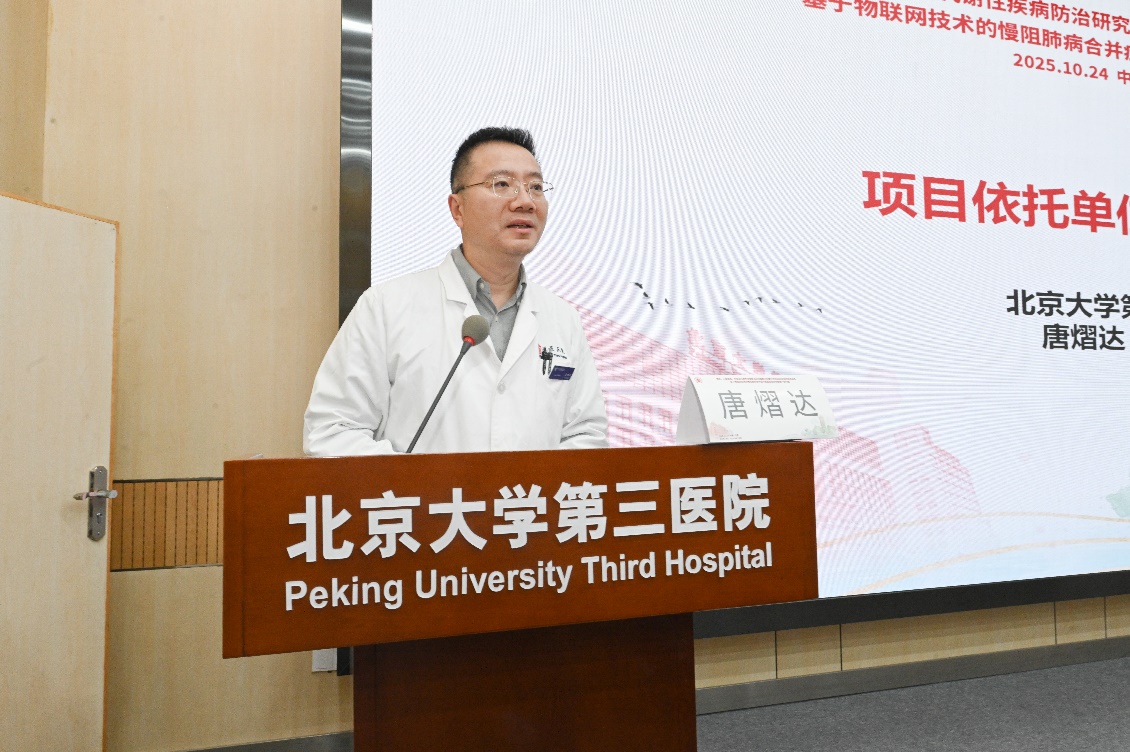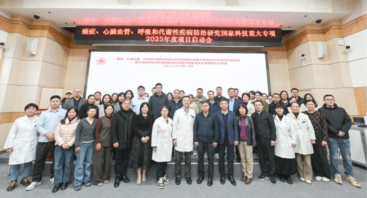 2025年10月24日上午,国家科技重大专项“基于物联网技术的慢阻肺病合并症中西医结合全程管理平台构建”项目(以下简称“重大专项”)启动会在北京大学第三医院举行。该项目由北京大学第三医院牵头,联合全国15家单位共同开展,旨在解决慢阻肺病合并症在早期诊断、急性加重预警和个体化全程管理中的关键难题,为推动“健康中国2030”战略提供科技支撑。