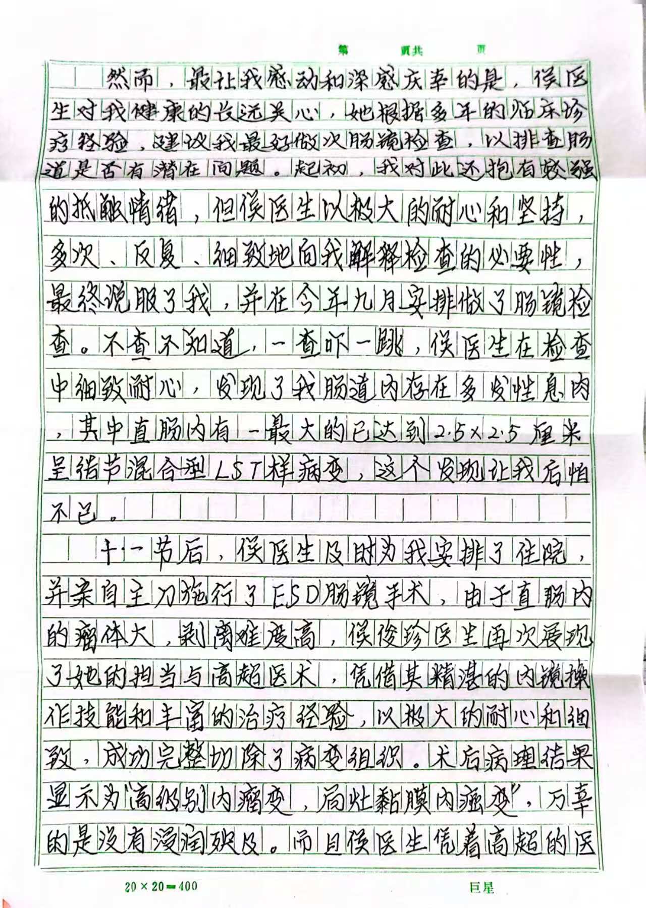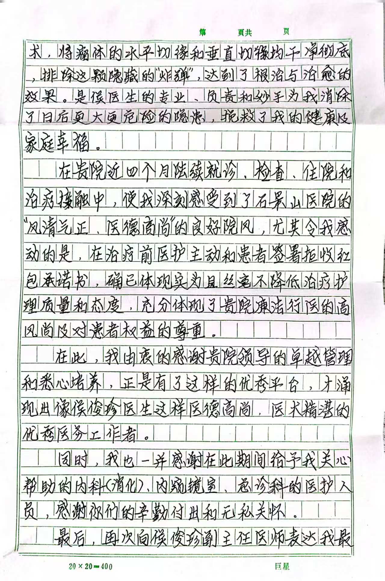 “是侯医生的专业、负责和坚持,为我消除了日后更大更危险的隐患,挽救了我的健康及家庭幸福!”王先生在感谢信中动情地表示。