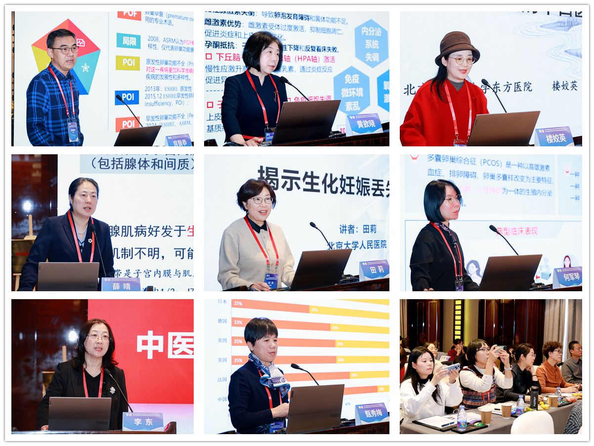 在学术交流环节,中国中医科学院针灸医院副院长房翳恭、西苑医院妇科主任黄欲晓,北京中医药大学东方医院妇科与生殖医学科主任楼姣英,北京大学第一医院生殖医学中心主任薛晴、北京大学人民医院生殖医学科主任医师田莉、北京妇产医院中医科主任何军琴,以及北京大学第三医院中医科主任李东、生殖医学科副主任医师甄秀梅等,分别围绕高龄助孕、中医药介入辅助生殖、早发性卵巢功能不全、子宫内膜及腺肌病、多囊卵巢综合征(PCOS)促排卵治疗等议题进行深入探讨和病例分享。多家医院的青年科研人员也积极参与学术交流,展现出中西医结合生殖医学领域的创新活力。