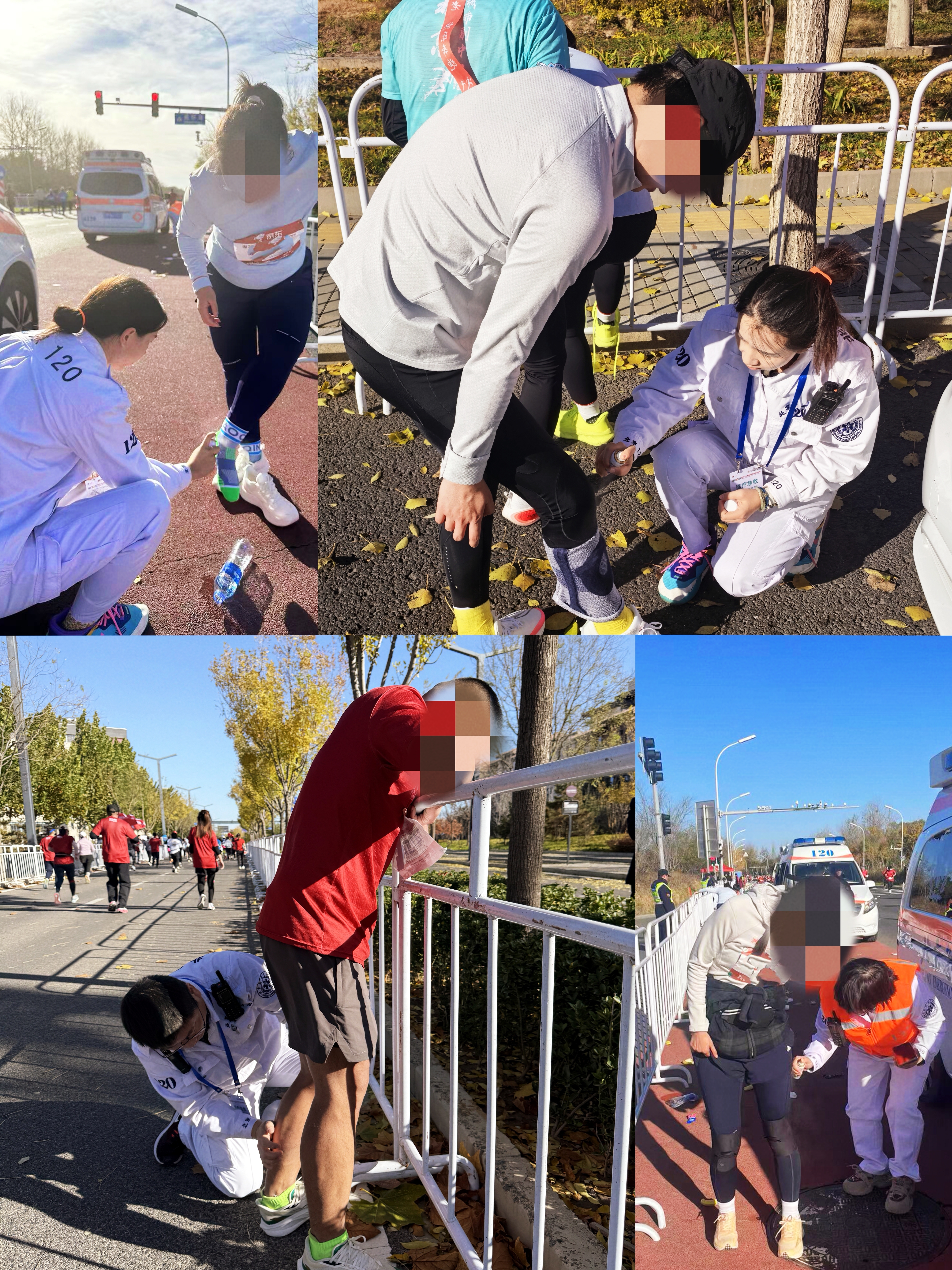 赛事过程中,各组急救人员全程值守,通过车载通讯系统与指挥平台实时联动,同步掌握赛道动态与跑者身体状况。面对体力不支、轻微擦伤等情况,医护人员及时提供补水、能量补给与伤口处理等帮助;遇有严重肌肉痉挛、短暂头晕乏力等症状的跑者,迅速实施专业处置,待其状态稳定后协助撤离赛道休息。中心还与赛事组委会保持紧密沟通,实时共享医疗信息,协同应对各类突发状况,共同构建起“全覆盖、高效率、专业化”的医疗保障体系。