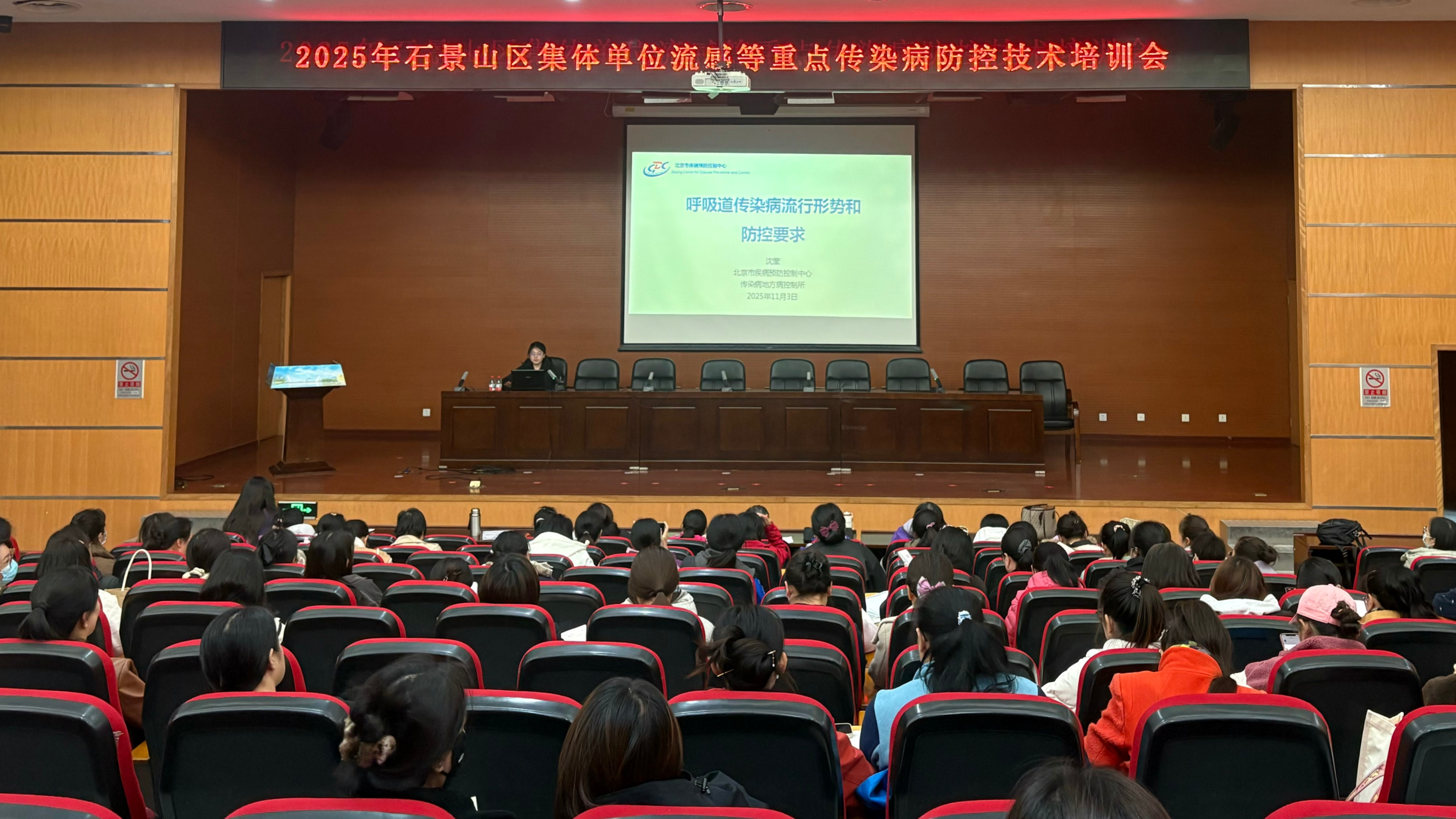 近日,石景山区卫生健康委组织区疾控中心举办“2025年石景山区集体单位流感等重点传染病防控技术培训会”,科学应对冬春季流感等重点传染病传播风险,切实提升学校、托幼机构、养老机构等集体单位的传染病防控能力。全区各级各类中小学校、托幼机构、养老机构相关医务人员,以及社区卫生服务机构业务骨干共计140余人参加培训。