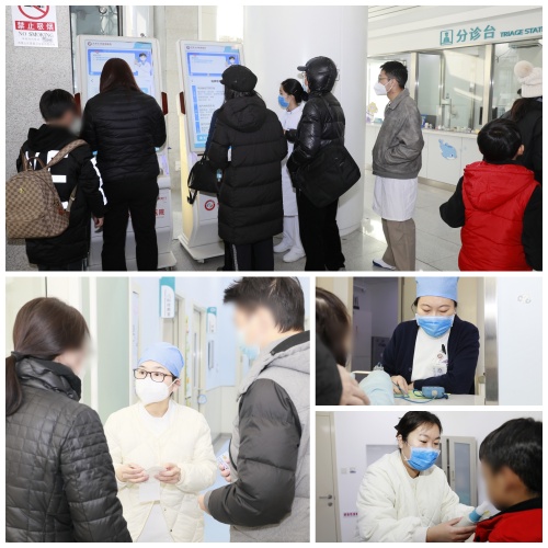 医学影像科团队争分夺秒,快速出具影像报告,为病情判断筑牢基础;药剂科团队提前预判季节性用药需求,将玛巴洛沙韦、磷酸奥司他韦等抗流感关键药物足额调配至急诊药房,确保患儿“有药可用、有药可及”。与此同时,门诊部牵头设计制作科室标识,协调志愿者在诊疗区答疑引导、分流人群;门诊挂号处灵活调整周末号源,动态应对就诊高峰。各部门攥指成拳,为儿科高效诊疗织就了一张覆盖全流程的保障网。