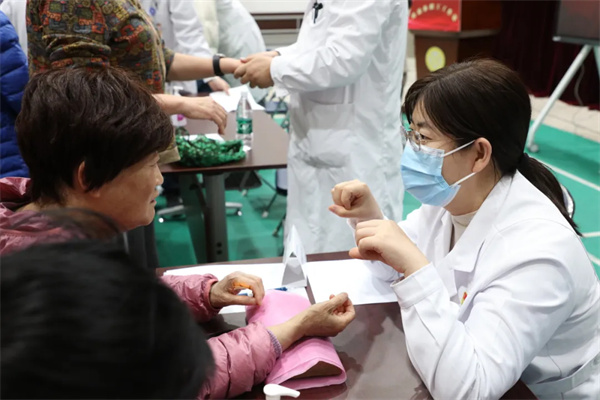 义诊环节,罗素兰团队为近80位教职工提供了专业诊疗。一位饱受肩痛困扰半年的退休老教授,在接受罗素兰“一推一按、一转一拔”的正骨手法调理后,疼痛明显缓解,肩关节活动度显著改善,连连称赞效果显著。团队其他成员也各司其职,刘寰宇博士为教师辨证开方,护士李改娟细致完成血压测量与健康档案记录,服务周到贴心。