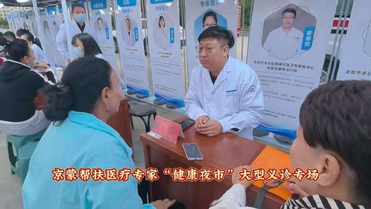 9月10日,姜春旭参与京蒙帮扶医疗专家“健康夜市”大型义诊活动,与多位来自北京市的支援专家一同在热闹的集市中设点接诊,为居民提供健康咨询服务,把专业的医疗服务送到群众身边。面对携带化验单前来咨询的群众,姜医师耐心倾听、细致解读指标,并结合中医辨证思路,提供个性化的健康调理建议。此次义诊不仅解答了居民的实际健康困惑,更拉近了京蒙医疗团队与当地群众的距离。