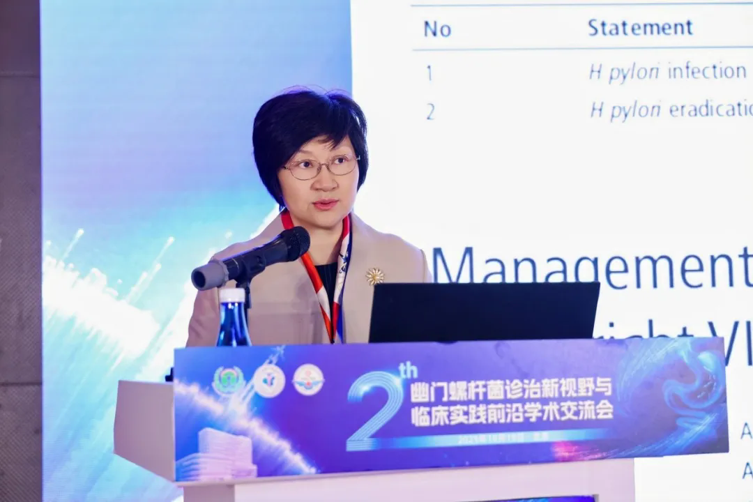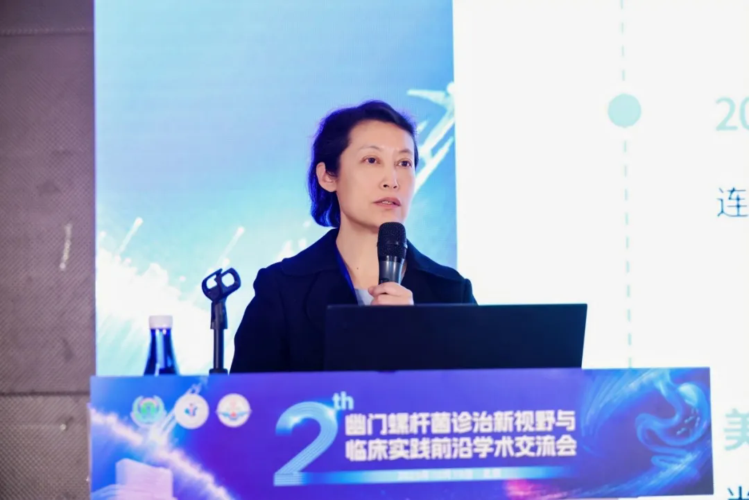 随后,北京大学第一医院王蔚虹教授聚焦临床难点问题,分享《难治性幽门螺杆菌感染的根除治疗》专题报告,系统阐述了难治性Hp感染的定义、形成机制(包括耐药基因变异、患者个体差异等),并结合临床实践经验提出了涵盖药物组合优化、疗程调整、耐药基因检测指导用药等在内的综合应对策略,为破解临床根除失败难题提供了宝贵的实践参考。