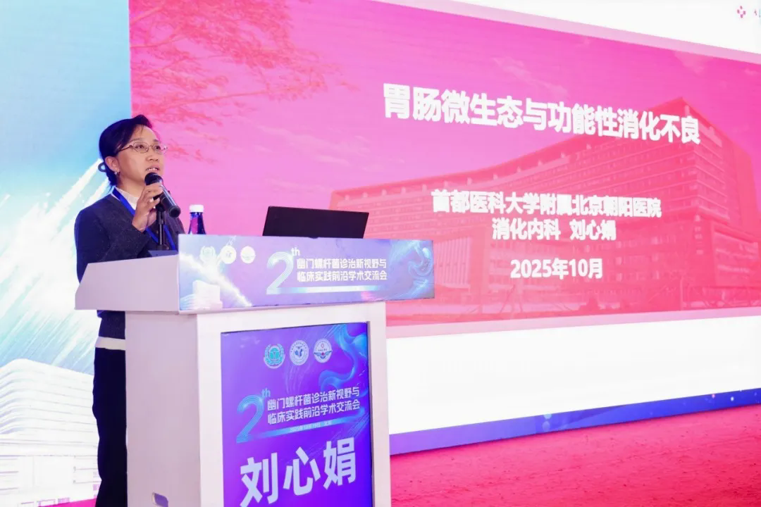 首都医科大学附属北京朝阳医院刘心娟主任作《胃肠微生态与功能性消化不良》专题报告,系统揭示了肠道菌群平衡与Hp感染的相互作用机制,以及菌群调控在Hp根除治疗及术后功能恢复中的潜在价值,为Hp综合治疗策略的优化提供了新的研究方向与思路,内容引人入胜。