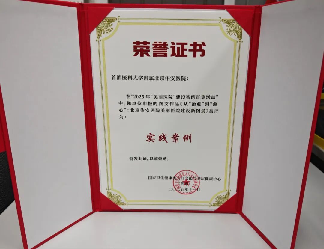北京佑安医院成功入选“美丽医院”实践案例,充分展示了医院在生态赋能,打造“治愈系”就医环境;空间优化,构建便捷高效的服务场景;文化涵养,厚植人文关怀的精神内核; 智慧驱动,赋能医疗服务提质增效;绿色发展,践行可持续的医院建设理念等方面的实践路径和显著成效。