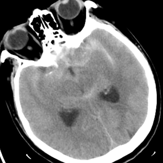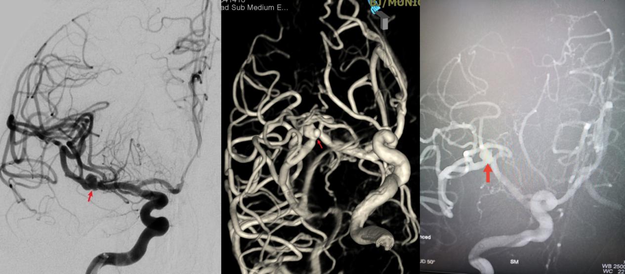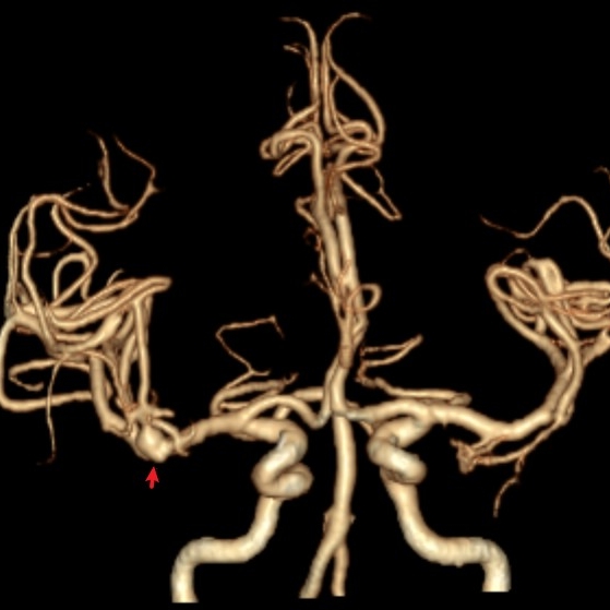 ▲CTA显示右侧大脑中动脉分叉动脉瘤