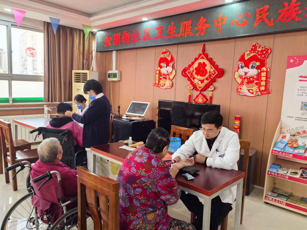 日前,石景山区金顶街社区卫生服务中心的医护团队来到石景山区民族养老院,为这里的老年人和工作人员送来健康服务。
