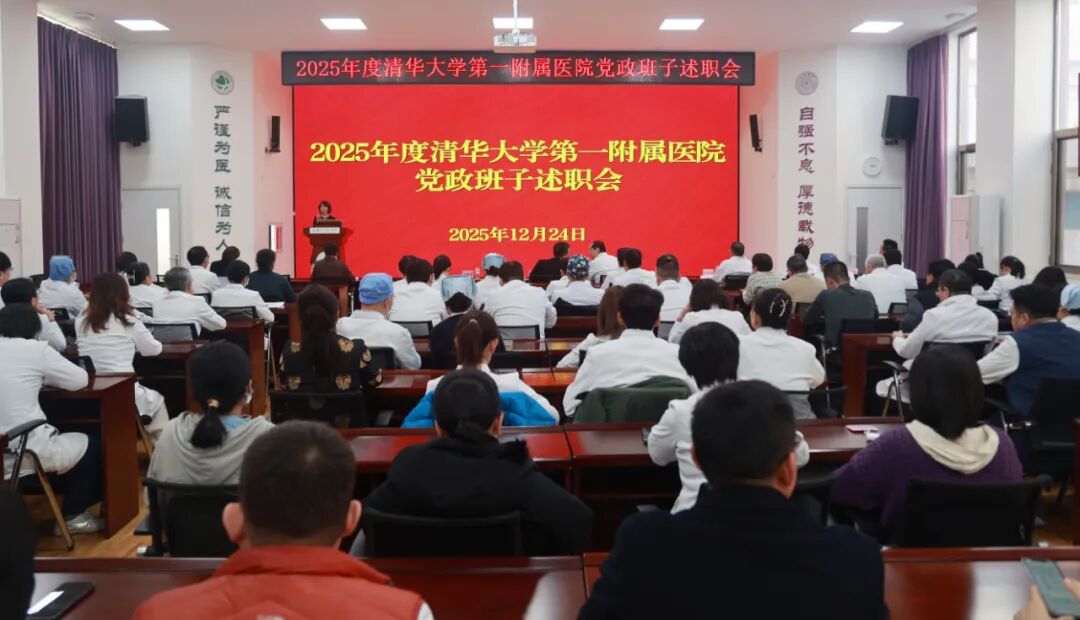 12月24日下午,清华大学第一附属医院召开党政班子2025年度述职会。清华大学副教务长、医学院院长黄天荫出席会议。医院中层干部、党支部书记、工会及团委负责人、党员代表、职工代表组长、大科护士长等100余人参会。会议由医院党委书记王晓莉主持。