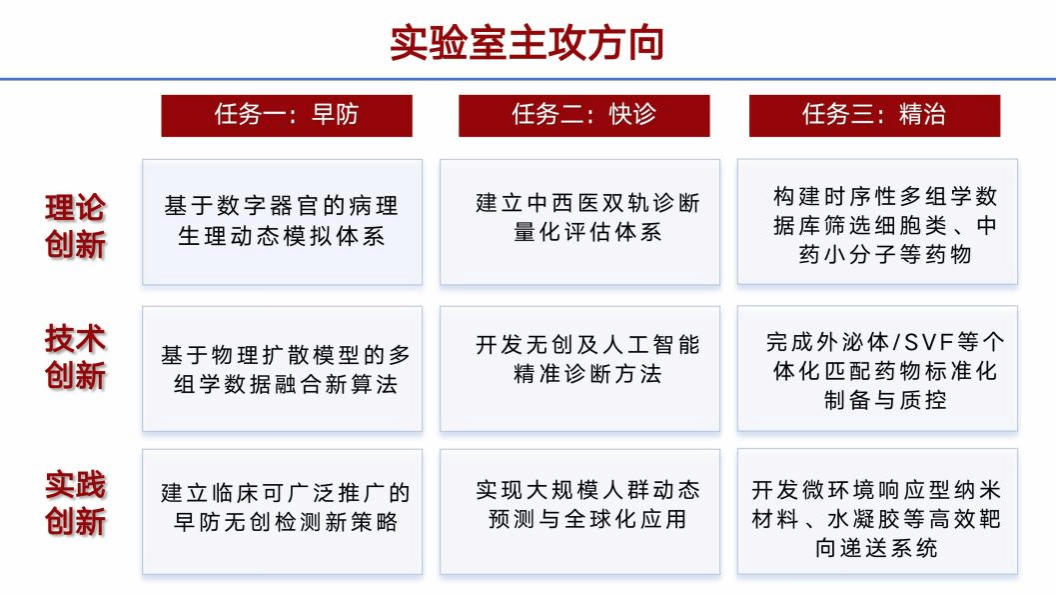 实验室聚焦生殖障碍性疾病的早期防控、精准识别与个体化干预,致力于构建服务首都、辐射全国的高水平交叉创新平台。实验室以生殖医学为核心,深度融合人工智能、多组学技术、生物材料与数字孪生方法,系统布局数字卵巢、数字子宫和数字睾丸等关键技术方向,推动从机制解析到临床转化的全链条创新。通过构建智能化诊断体系和精准治疗技术平台,实验室着力提升生殖健康疾病的预测、诊断与干预能力,促进科研成果转化应用,为北京市及国家人口质量提升和生育健康战略提供持续的科技支撑。