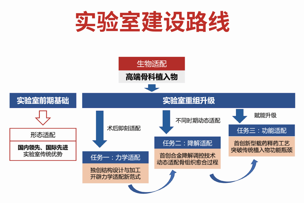 研究团队专注于骨科高端植入物研发近二十年,完成世界首例金属3D打印定制植入物应用,获批中国首个3D打印金属植入物注册证,系列成果曾获北京市科技进步奖一等奖。实验室主要建设目标是打造规范化、数智化、国际化的高端骨科植入物研发基地加速产品转化落地,协同促进人民健康和经济发展。未来将着力攻关力学适配、降解适配、功能适配高端骨科植入物设计与制造技术,构建临床需求导向的智能制造体系,最终实现生物适配。