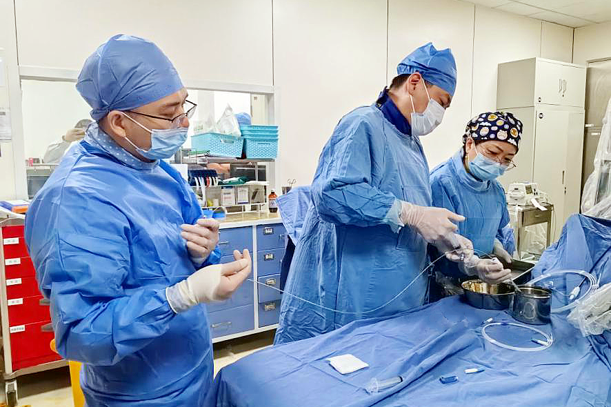 2025年,团队全年放弃所有周末及节假日休息,保持24小时响应。通过优化胸痛中心绿色通道,团队创造了患者入院至血管开通仅14分钟的DToB纪录,远低于国家标准。全年完成介入诊疗手术2300余例,其中急诊手术300余例,救治包括90岁左右高龄、左主干急性闭塞、心源性休克等在内的高危复杂病例占比超过30%,急诊介入救治数量与质量均位居北京市前列。