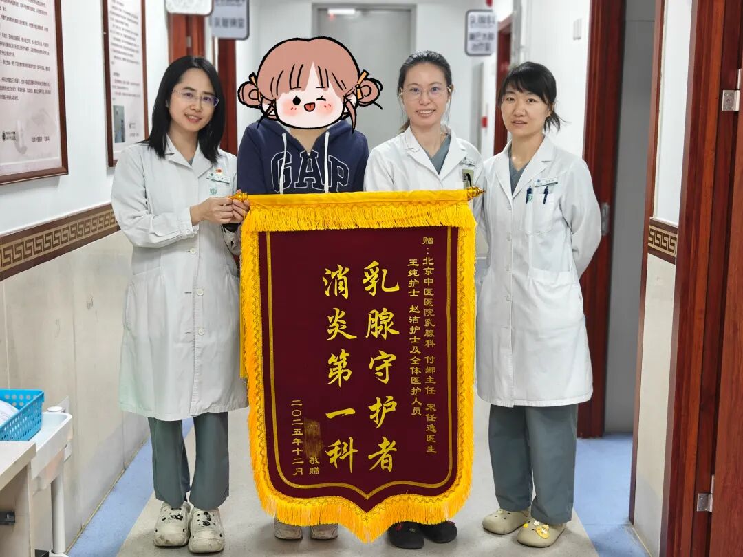 经过一段时间的治疗和护理,李女士顺利康复。为表感激之情,她向北京中医医院乳腺科全体医护人员送上了一面写有“乳腺守护者,消炎第一科”的锦旗,这不仅是对医护人员专业能力的认可,更是对他们人文关怀的由衷赞美。