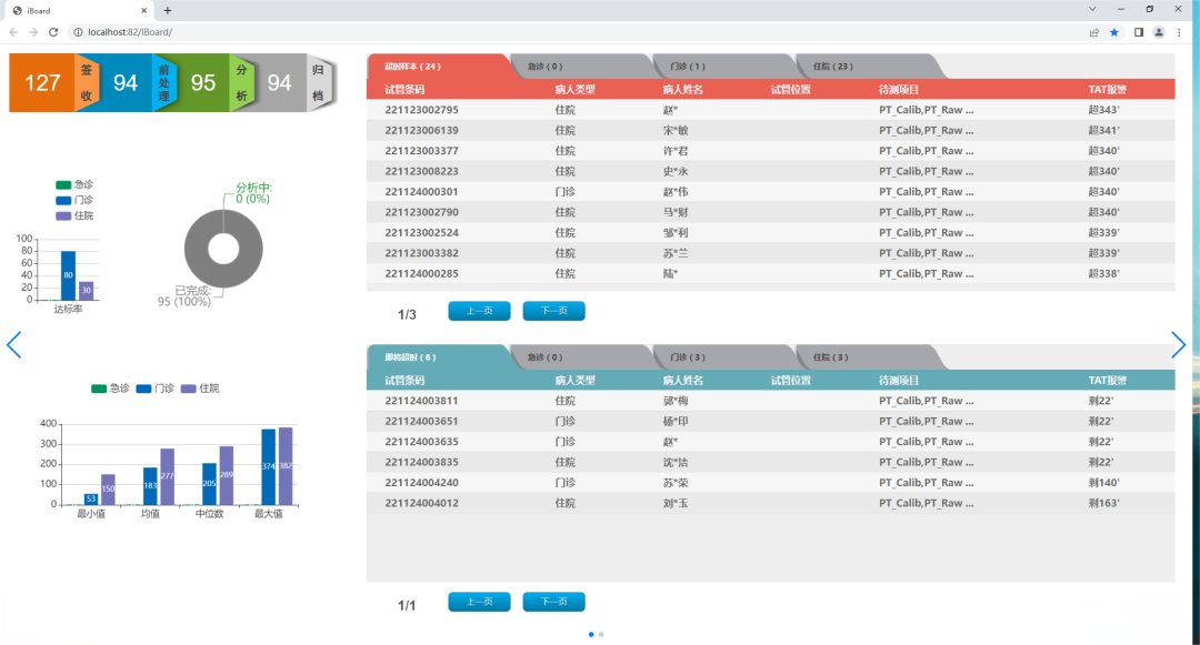 2、急诊绿色通道与TAT超时提醒,系统自动识别加急样本并优先检测,实时预警TAT超时样本,为急诊救治抢出黄金时间。