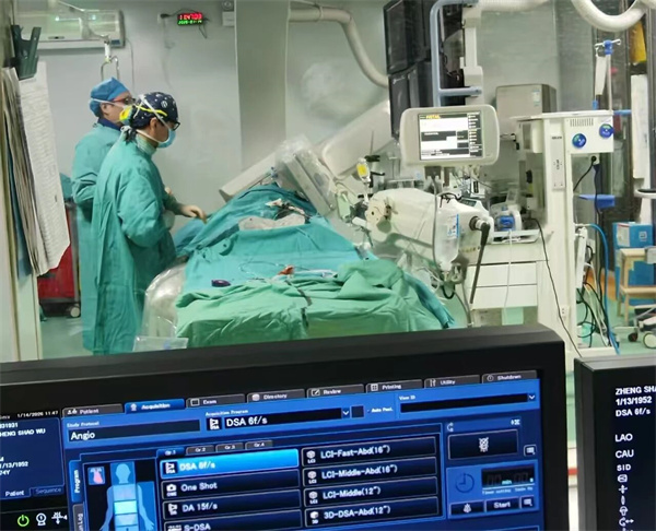 此次高难度手术的成功,离不开医院强大的硬件平台与专业团队。科室配备飞利浦FD20、佳能INFX-9000及西门子Artis zee三台高端DSA设备,能够完成高清造影与三维重建,为复杂解剖结构提供清晰导航。同时,血管内超声、主动脉球囊反搏泵等关键设备,为术中评估与循环支持提供了坚实保障。科室全年完成介入手术超4000台,具备7×24小时全天候急诊救治能力。