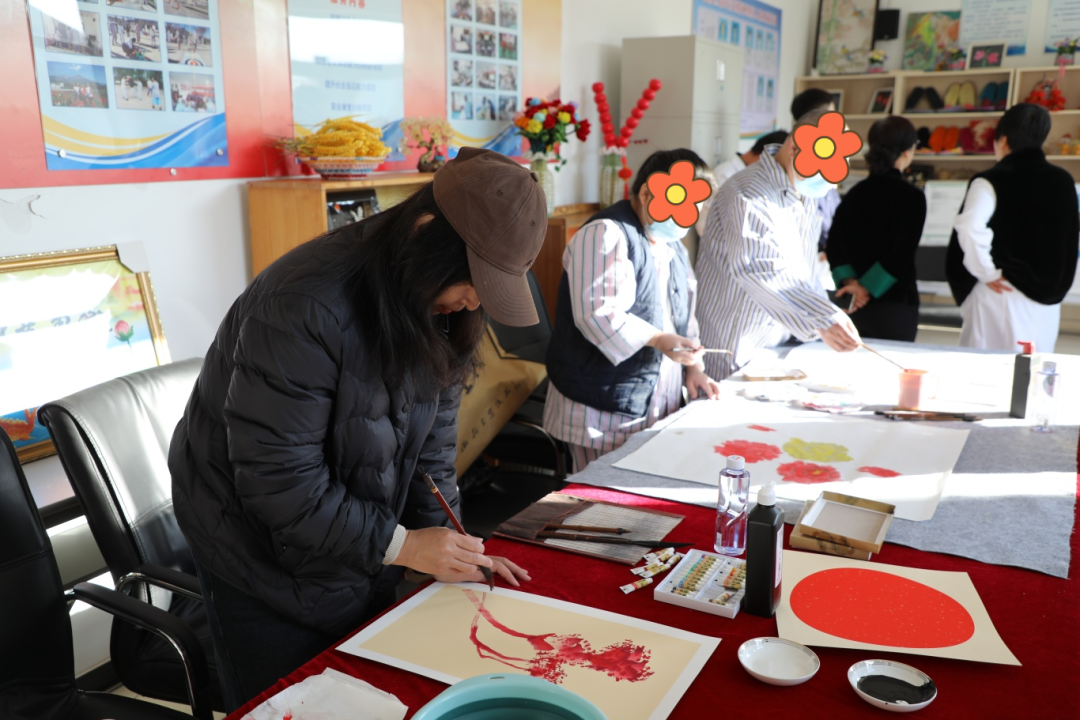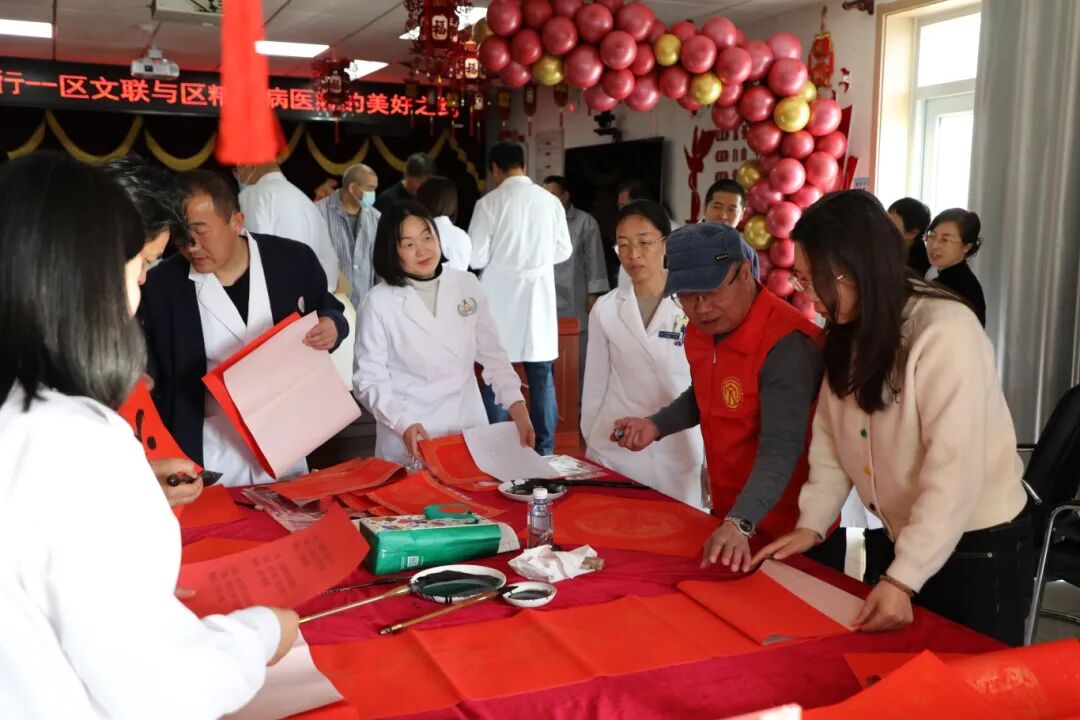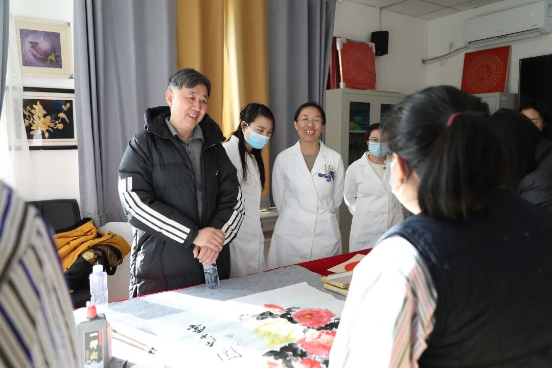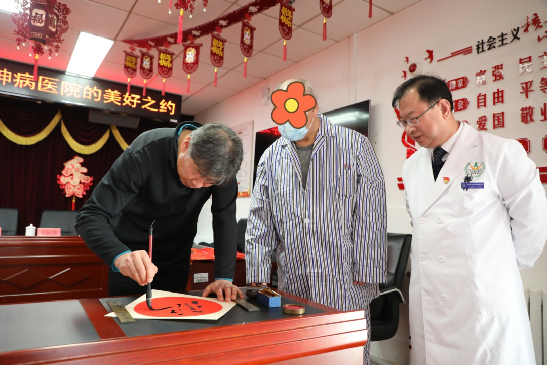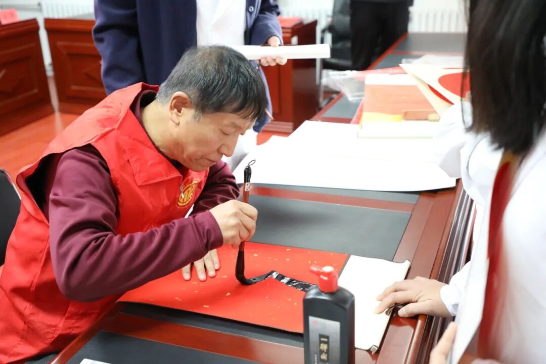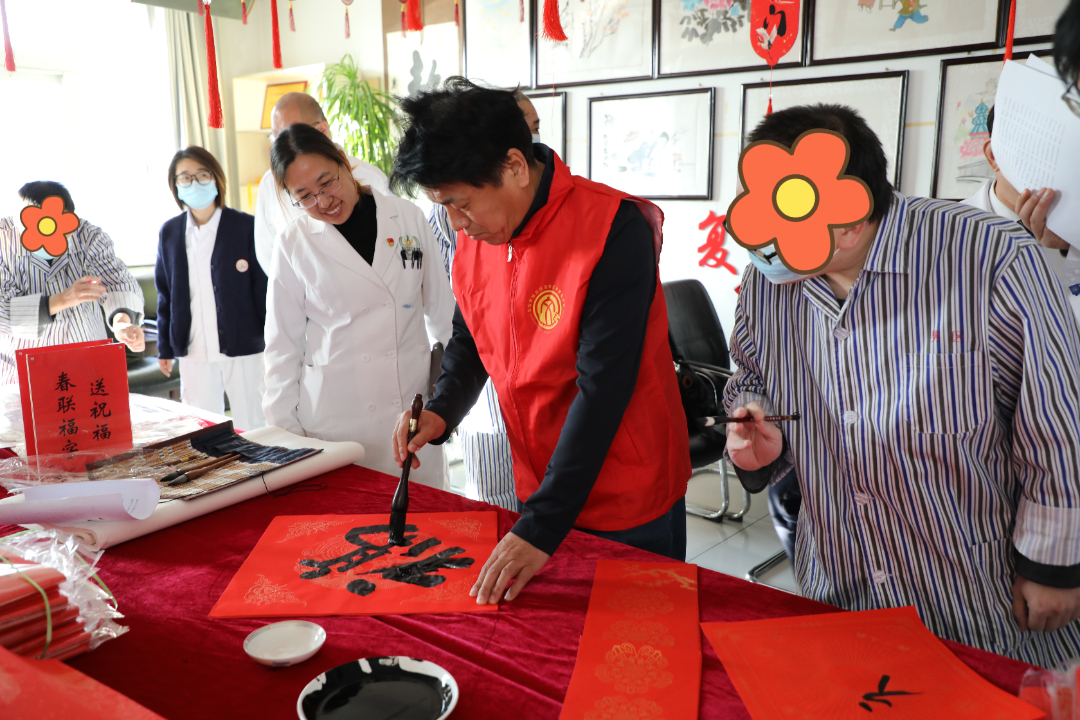 “横平竖直藏气韵,一撇一捺见初心”。文联书法指导老师现场挥毫,讲解春联笔法与构图技巧,患者代表与医护人员近距离学习临摹。活动中,医患分组协作,一笔一划书写春联、勾勒福字,患者在笔墨挥洒中舒缓心绪、建立自信。红底黑字的春联不仅承载着新春祝福,更传递着“被看见、被认可”的精神力量。