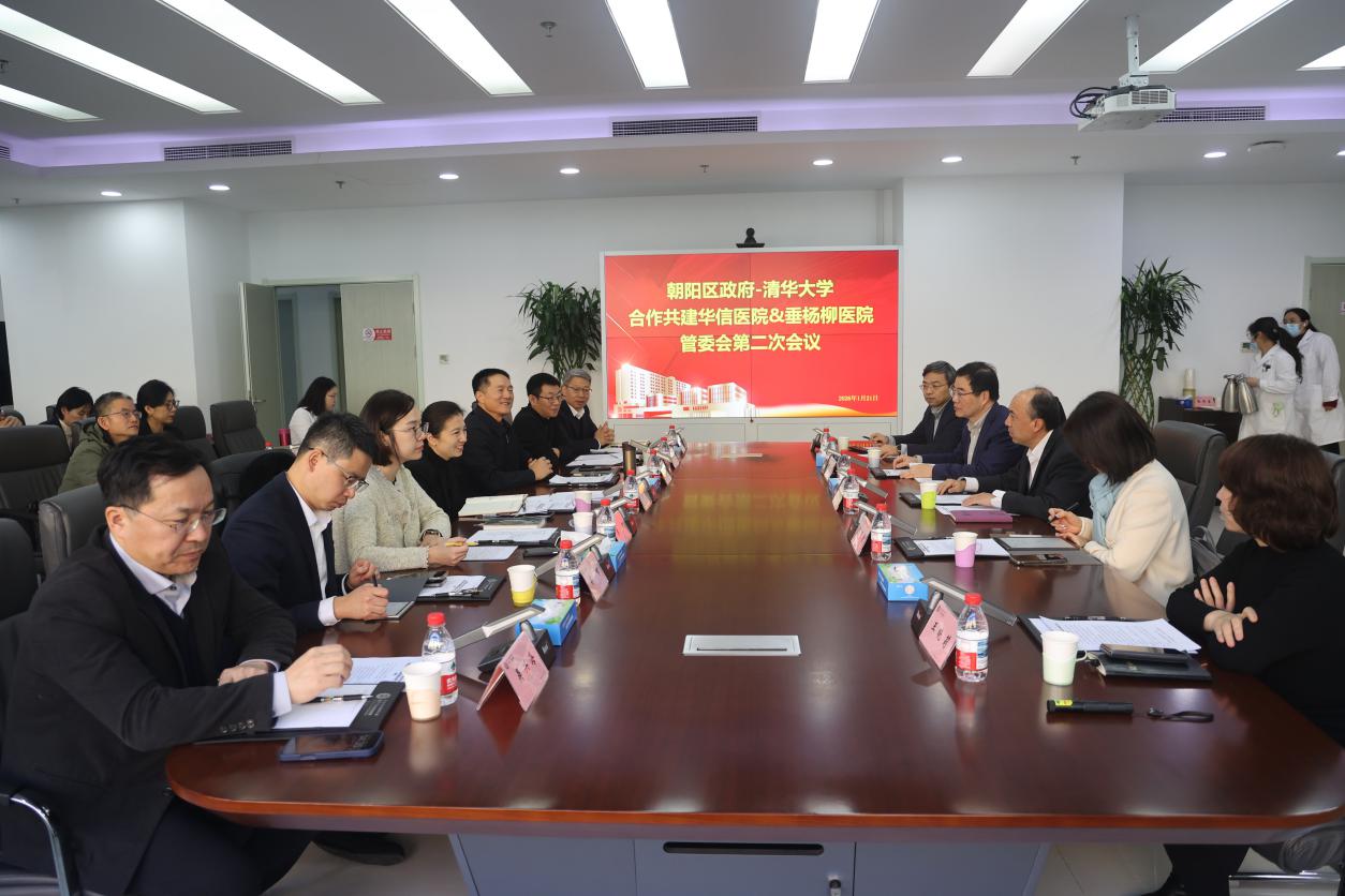 1月21日,朝阳区政府—清华大学合作共建华信医院&垂杨柳医院管委会第二次会议在清华大学附属垂杨柳医院召开。此次会议以深化校地医疗合作、推动区域医疗卫生事业高质量发展为核心,系统梳理合作进展,明确下一步工作方向,同时举行转化医学平台专项合作协议签约仪式,标志着双方合作迈入精准对接、深度融合的新阶段。清华大学副校长王宏伟,朝阳区副区长陈黛出席会议并讲话,区委卫健工委书记周长春主持会议。