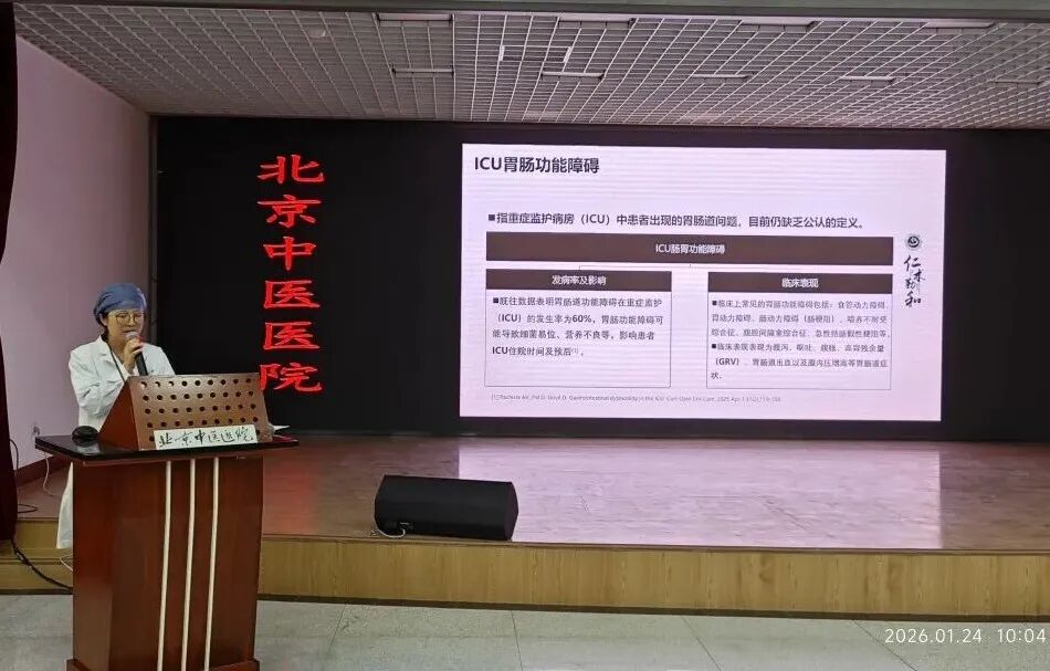 主治医师张鑫则围绕《胃肠功能障碍中医外治技术》,介绍了穴位贴敷、中药灌肠、针刺等外治方法在急危重症患者中的应用。