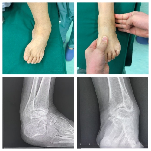 “小时候只是有点内翻,没当回事,没想到越长大越严重。”李女士的声音带着无奈,“后来走路都得拄拐,稍微走几步就疼得钻心,现在只能靠轮椅出门。” 随着年龄增长,足部畸形如同藤蔓般生长,一点点侵蚀着她正常行走的权利,将她的生活圈越缩越小。接诊的副主任医师王占国深知,这绝非普通的足部畸形。经过细致查体,真相浮出水面:李女士患的是腓骨肌萎缩症引发的重度马蹄高弓内翻足,距骨扁平、跟骨短宽,踝关节诸骨的解剖关系早已错乱,多处筋膜和韧带挛缩如紧绷的琴弦,关节退变引发的重度关节炎更是让治疗难上加难。