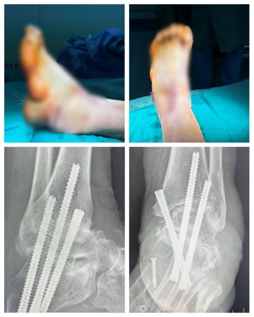 创伤骨科的专家团队迅速集结,一场激烈的术前讨论在会议室展开。“患者足部畸形涉及多个维度,筋膜挛缩、肌腱失衡、骨骼畸形、关节退变,单一手术根本无法解决问题。”“关节融合要精准把控角度,截骨位置不能有丝毫偏差,肌腱转位更是考验操作精度……”专家们各抒己见,如同在绘制一幅精密的作战地图,每一个细节都反复推敲。最终,一套“组合拳”式的手术方案敲定:左侧胫距跟关节融合、胫后肌腱转位、跟腱松解、跖骨截骨、跖筋膜松解,多术式协同,只为一举攻克这半世纪的畸形难题。