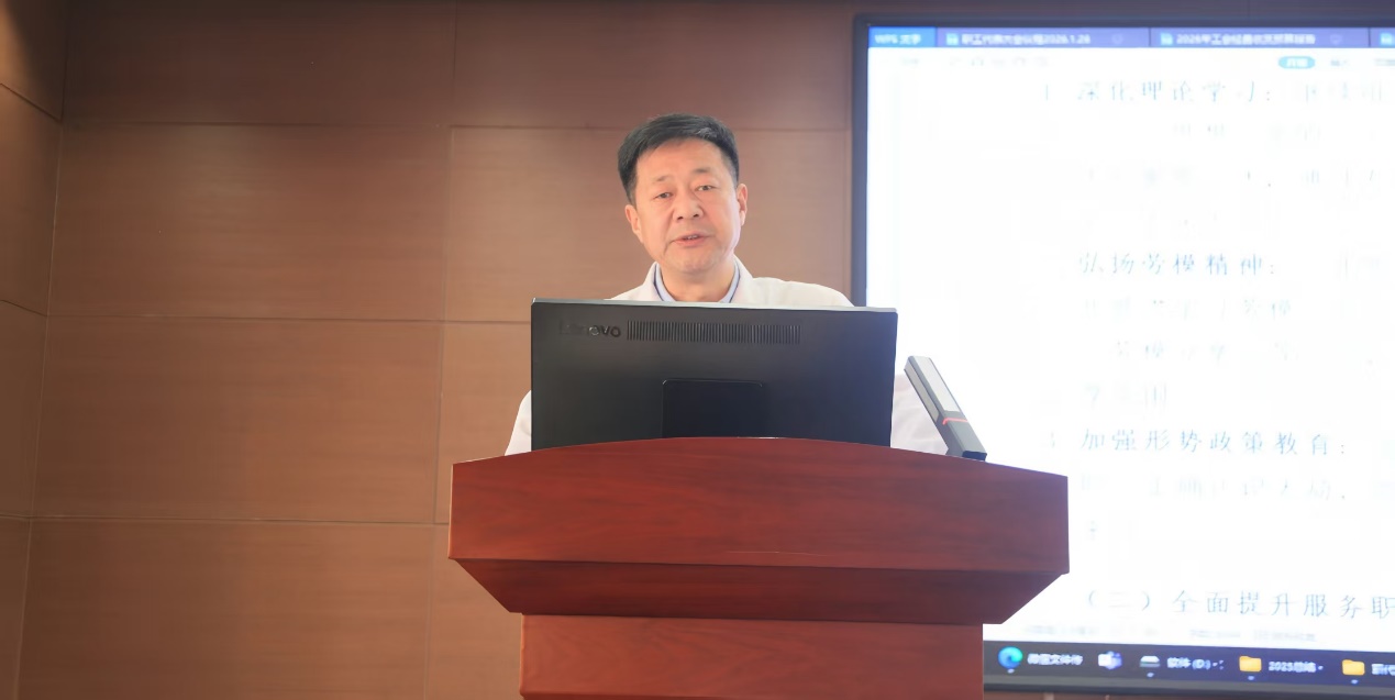 工会主席马建文同志作《2025年工会工作总结及2026年工作计划》报告。报告系统总结了过去一年工会在服务职工、维护权益、丰富文化生活等方面取得的成绩,并明确了2026年工会工作的总体思路和重点任务,表示将继续发挥桥梁纽带作用,为职工办实事、解难题。