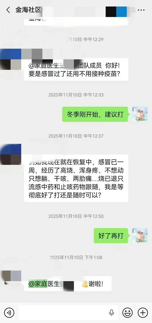 除了线下随访、用药指导、预约转诊,家庭医生的“线上战场”同样活跃。他们深入3170个微网格群,不仅是知识的传播者,更是随时在线的健康顾问。“大妈,您今天测的血压数值有点高,昨天休息怎么样?药按时吃了吗?”“大爷,您这个血糖值,最近主食要再控制一下,我发您一个食谱参考。”这样的对话,每天都在各个网格群里发生。健康指导从被动等待咨询,变为主动动态跟进,有效减少了居民尤其是行动不便者往返医院的奔波。