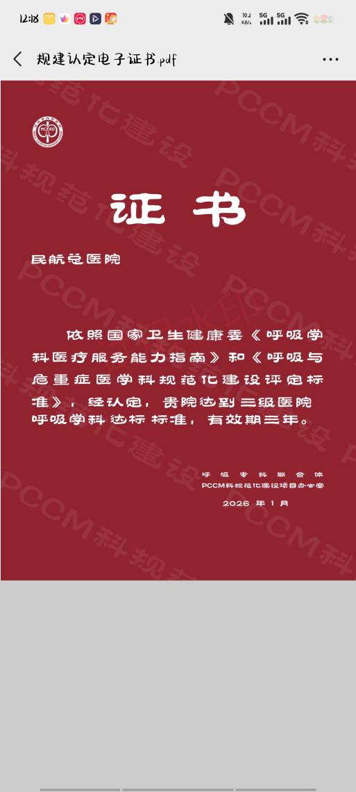 经过多年的持续努力与建设,民航总医院呼吸与危重症医学科顺利通过国家PCCM(呼吸与危重症医学科)规范化建设项目现场评审,正式获评“PCCM建设达标单位”,标志着民航总医院呼吸与危重症医学科在硬件设施、人才队伍、技术能力与质量管理等方面达到国家行业标准,为“十四五”期间学科发展画上圆满句号。