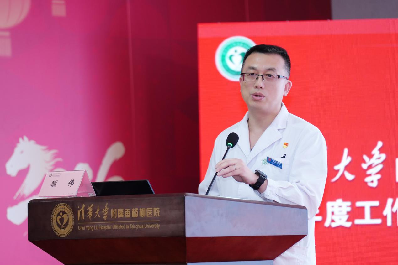 院长张新庆在发言中,正式发布了《北京市垂杨柳医院科技人才培养与科技创新促进计划(2026-2028年)》,并进行了深度阐释。他表示,该计划的发布与启动是医院立足当前、谋划长远的关键战略,是推动“医疗、科研、管理、人才”四位一体融合发展的核心举措,也是医院提升综合竞争力、全力打造区域医疗中心的必然路径。张新庆强调,该计划的核心在于实施科技促进“千万工程”,旨在通过未来三年持续稳定的重点投入,构建以即将建成的“清华大学医学院-垂杨柳医院转化医学平台”为枢纽的“临床-科研-转化”一体化创新链条。计划重点部署了三方面关键举措:一是建设高能级转化医学平台,打造“临床-科研-转化”一体化创新链;二是健全科技人才育引机制,构建全链条培养体系;三是建立可持续的经费保障体系。张新庆号召全院职工把握发展机遇,共同推动医院学科建设与科技创新迈上新台阶。