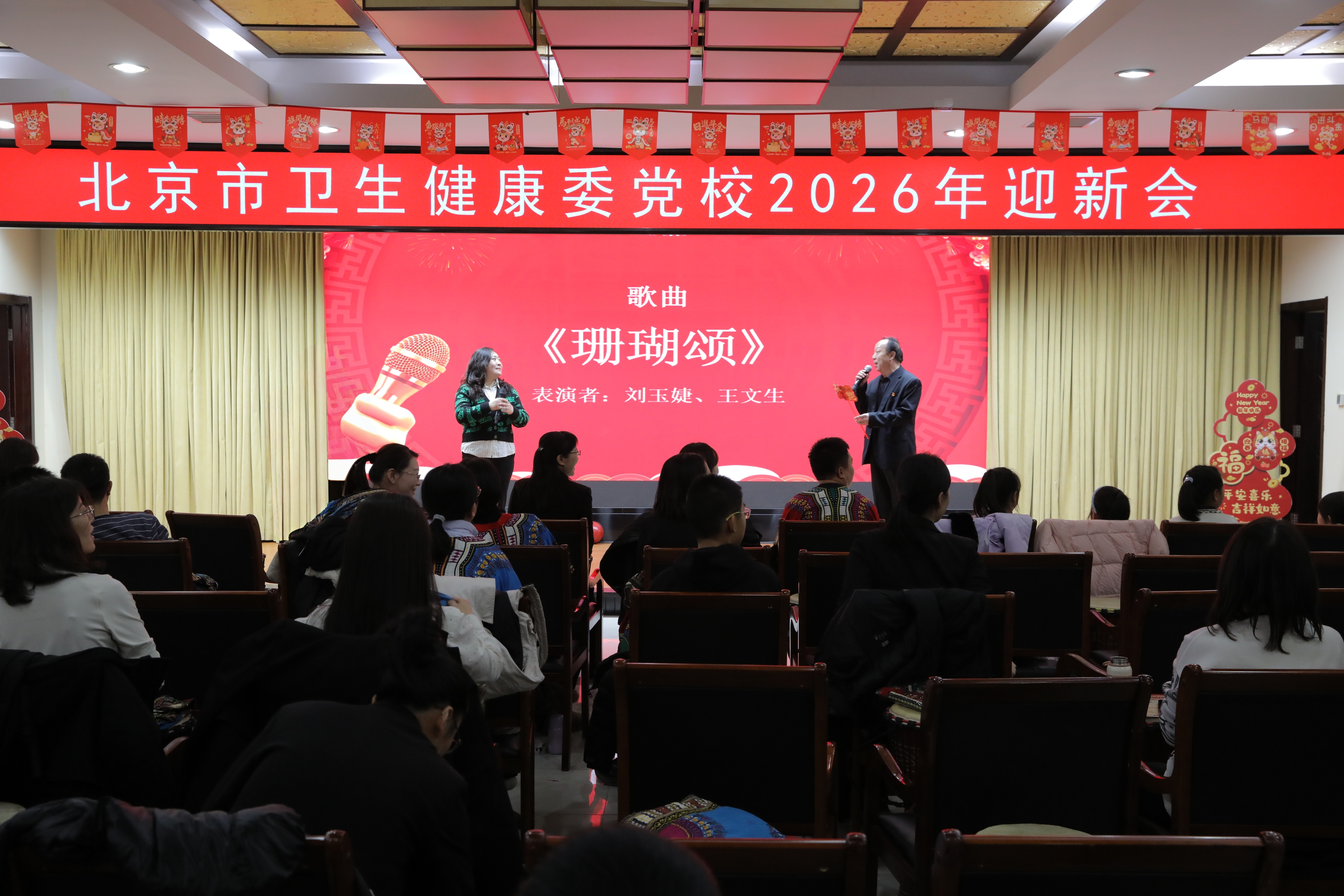 为迎接2026年新春佳节,丰富职工文化生活,展现教职工积极向上的精神风貌,1月26日北京市卫生健康委党校工会联合团支部共同举办了2026年“同心筑梦党校家 携手奋进启新程”迎新会。全体教职工、物业职工代表及教职工子女欢聚一堂,共庆新春。