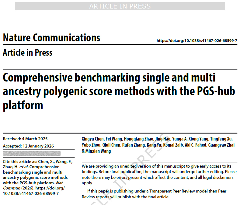 近日,首都医科大学附属北京潞河医院再传科研喜讯:心脏中心翟光耀教授继去年在《JAMA Cardiology》(中科院一区,JCR:Q1,IF=14.1)发表遗传变异与心房颤动发病风险关联的研究成果后,进一步拓展研究领域,再度刷新心血管学术影响力,作为通讯作者在国际顶级综合性学术期刊《Nature Communications》(中科院一区,JCR:Q1,IF=16.6)发表题为《Comprehensive Benchmarking Single and Multi Ancestry Polygenic Score Methods with the PGS-hub Platform》的研究论文,展示了多基因风险计算方法评估的创新性成果,其中系统评估了多基因风险评分计算方法在心血管疾病表型预测中的应用价值。
