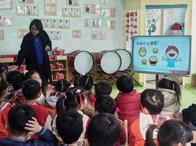 “什么样的表情是生气呀?”“开心的时候,我们会想做什么?”随着亓老师的提问,孩子们的兴趣被迅速点燃。他们争先恐后地举手,踊跃模仿各种情绪状态,教室里顿时充满了欢声笑语。通过这场活泼的“情绪模仿秀”,孩子们在游戏中建立了对情绪的初步感知。