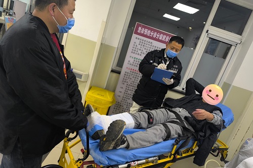 2月10日,北京大学首钢医院120院前急救站的宁静被一阵急促的电话铃声打破:一名登山爱好者在虎头山未开发野山区域登山受伤,被困接近山顶处,无法自主行动,情况危急。接警后,医师石相义、护士李冬生、司机居磊组成的急救小组即刻行动,携带急救箱、夹板等专业设备,火速驱车赶往事发地。