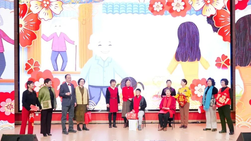 院领导班子成员集体登台,代表全院职工向老同志们拜年,送上充满“马”字成语的美好祝福。
