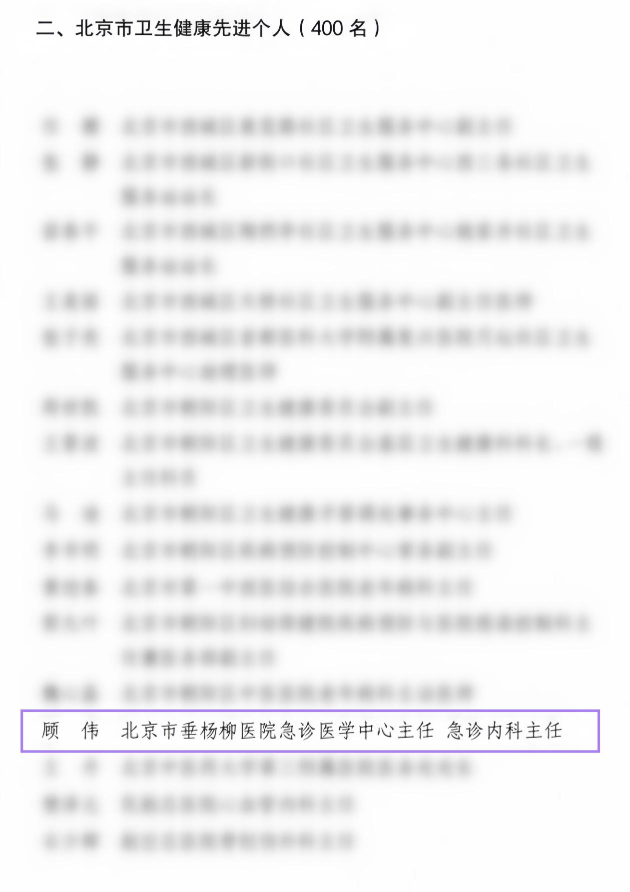 近日,由北京市卫生健康委员会、北京市中医药管理局、北京市疾病预防控制局、北京市人力资源和社会保障局联合发布了《关于表彰2020-2024年度北京市卫生健康先进集体、先进个人和首都无偿献血工作先进集体、先进个人的决定》。北京市垂杨柳医院儿科获评“北京市卫生健康先进集体”;急诊医学中心主任、急诊内科主任顾伟获评“北京市卫生健康先进个人”;急诊科护士孟庆智获评“首都无偿献血工作先进个人”。三项殊荣的获得,充分展现了北京市垂杨柳医院在学科建设、急危重症救治和社会公益等方面的突出成绩。