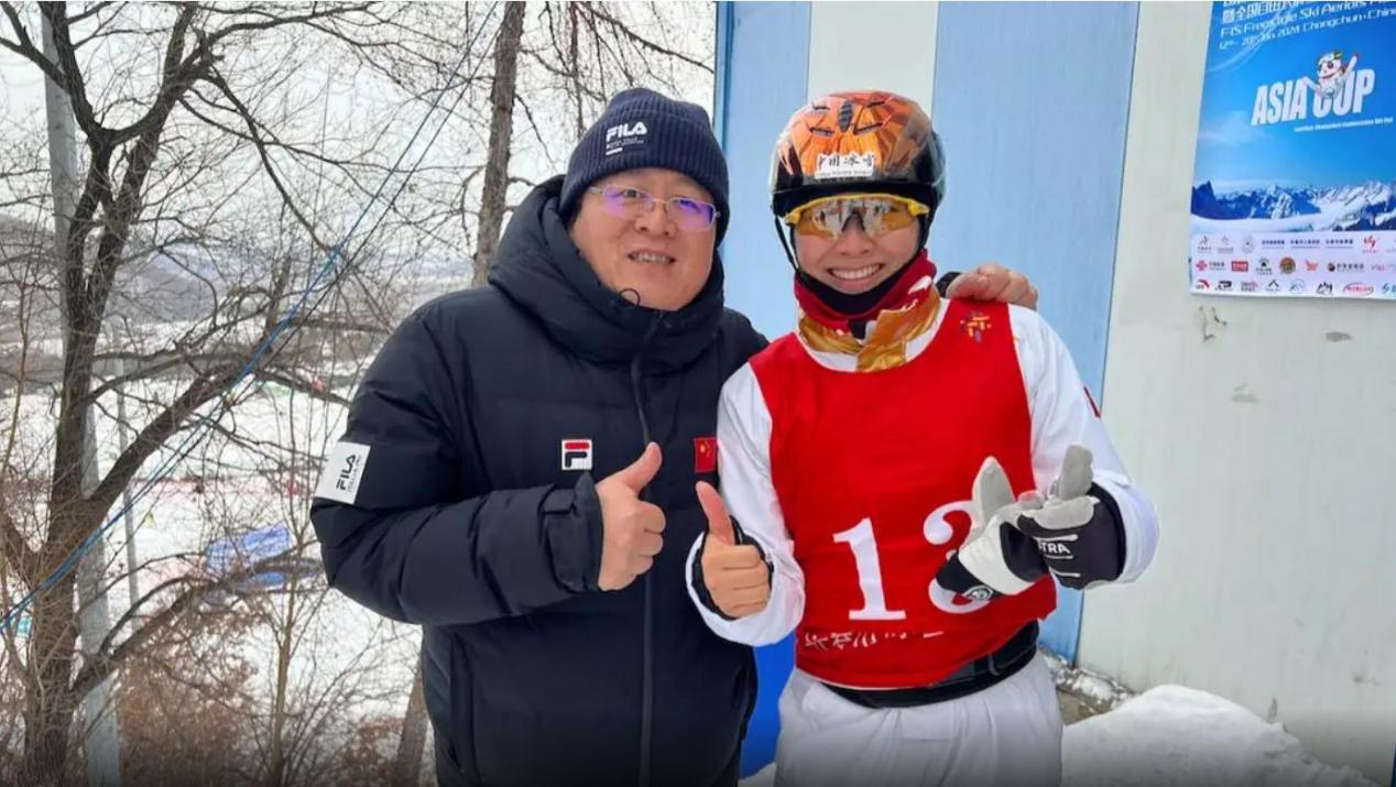 2022年北京冬奥会徐梦桃夺冠后与运动医学科主任王健全合影