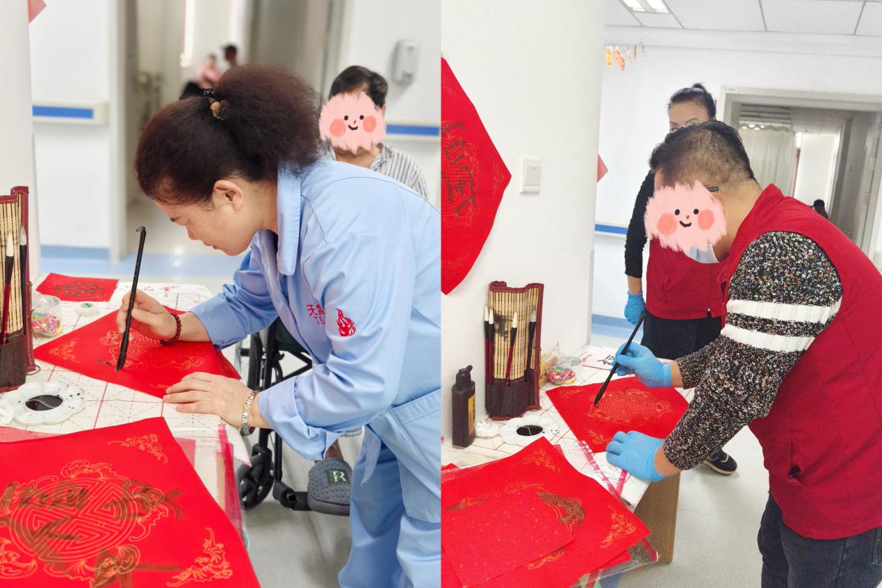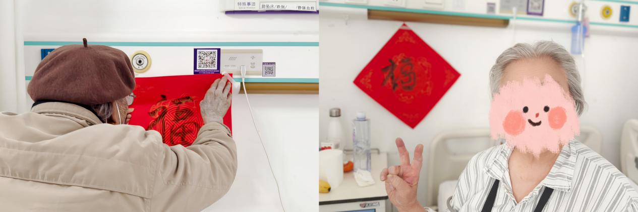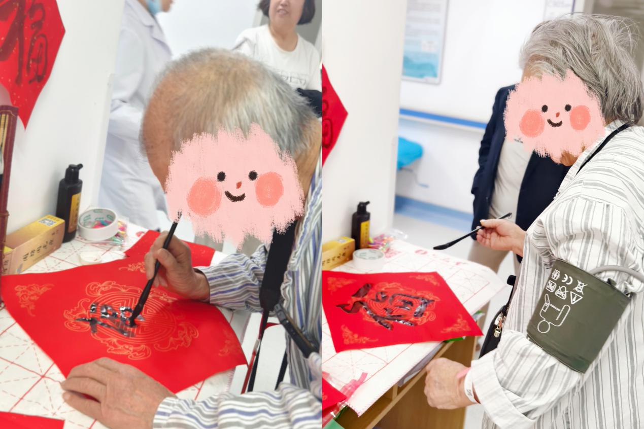 春节前夕,清华大学附属垂杨柳医院老年医学科的病房里多了几分热闹。2月11日,老年医学科在病区组织了一场写福字、送祝福的活动,邀请住院患者、家属和护工一起参与。